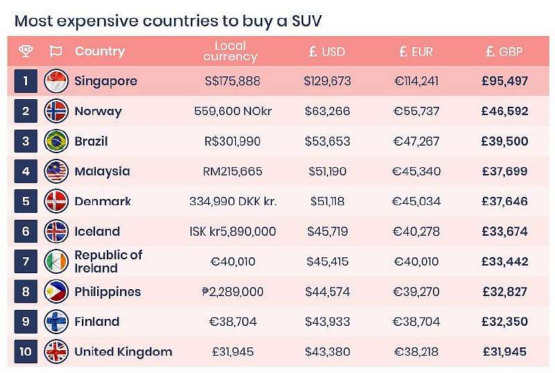 Как видим, в Сингапуре фанатам хэтчбеков приходится сложнее всего: за хороший, но в целом обычный VW Golf просят почти 135 000$! Правда, так дорого там стоят вообще все машины: страна пытается ограничить их количество на дорогах, и поэтому устанавливает конские транспортные налоги.