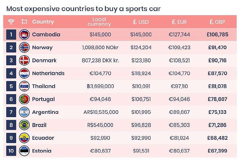 Цены на машины в разных странах сильно отличаются: например, в Польше за 4-5 тысячи евро уже будет неплохой выбор не сильно старых авто, тогда как в России за эти деньги особо не разгуляешься. Издание confused.com составило интересный рейтинг государств с самыми дорогими и самыми дешевыми автомобилями разного класса (учитывались только цены новых авто из салона).