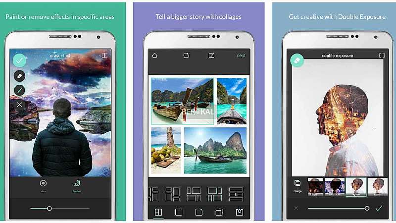 Рейтинг лучших приложений для ретуши на Андроид продолжает Pixlr. Это самый настоящий комбайн, в котором можно создавать коллажи, пользоваться крутыми фильтрами, накладывать художественный текст и работать с цветом снимков. Есть уникальная функция двойной экспозиции, позволяющая объединять несколько фотографий в одну, создавая необычные фотомиксы. Загружать изображения можно не только с памяти смартфона, но и напрямую с облачных хранилищ вроде Google Photos.