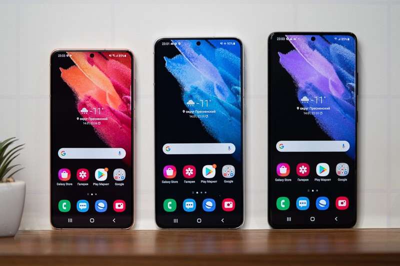 Все модели имеют степень защиты от воды и пыли IP68. Задник смартфонов – матовый, однако тыльную панель из стекла получили только S21+ и Ultra, у обычного S21 она сделана из поликарбоната, как у S20 FE.