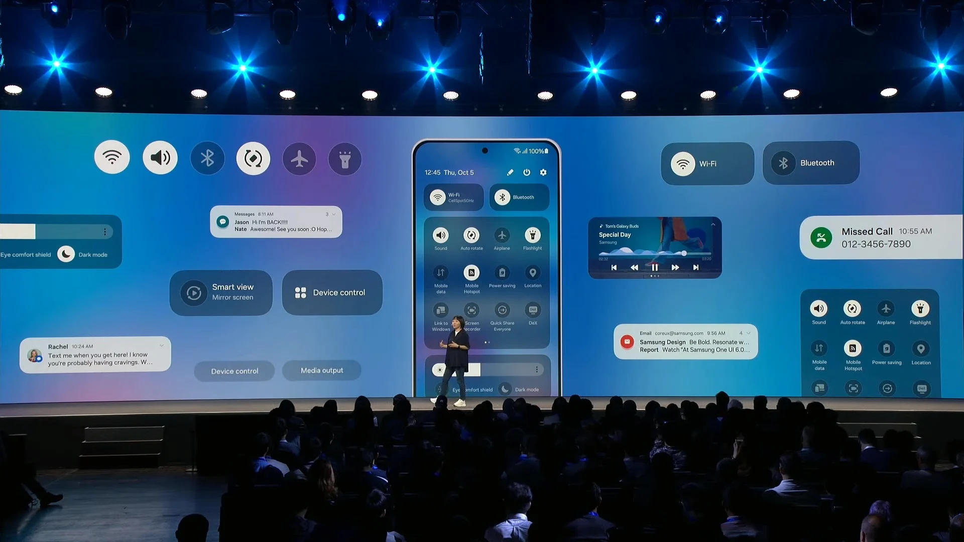 Samsung решила навести порядок в панели быстрых настроек — в One UI 6 «шторка» будет разбита на несколько кластеров. Иконки активации WiFi и Bluetooth находятся на самом верху, функции, связанные с управлением яркостью подсветки, режимом защиты глаз и темной темой, сгруппированы в отдельном разделе внизу, а большая часть быстрых настроек расположены между ними. Производитель заявляет, что пользователям будет проще найти нужную функцию благодаря удобной группировке и контрастности интерфейса.