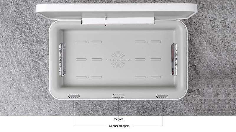 Стерилизатор представляет собой пластиковый бокс размером 196×96×33 мм, в который можно поместить смартфон или другой аксессуар, например, смарт-часы, очки или беспроводные наушники. Внутри встроены две ультрафиолетовые лампы, загорающиеся при нажатии специальной клавиши. Процесс обеззараживания длится 10 минут и прекращается автоматически, за это время УФ-изучение уничтожает 99% известных бактерий и микробов. Поскольку SARS-CoV-2 не переносит ультрафиолет, стерилизатор будет эффективным и против возбудителей коронавируса.
