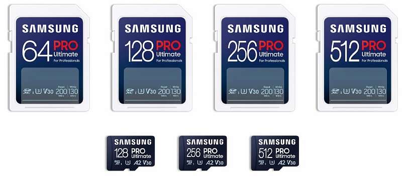 Samsung PRO Ultimate в версии microSD доступны в трех объемах: 128, 256 и 512 ГБ. В свою очередь, SD-карты появятся на прилавках магазинов в 4 вариантах: 64, 128, 256 и 512 ГБ. Продажи стартуют в четвертом квартале этого года по цене от 18.99$.