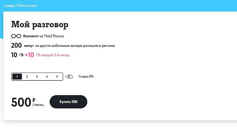 - Безлимитные звонки на Tele2 внутри домашнего региона.