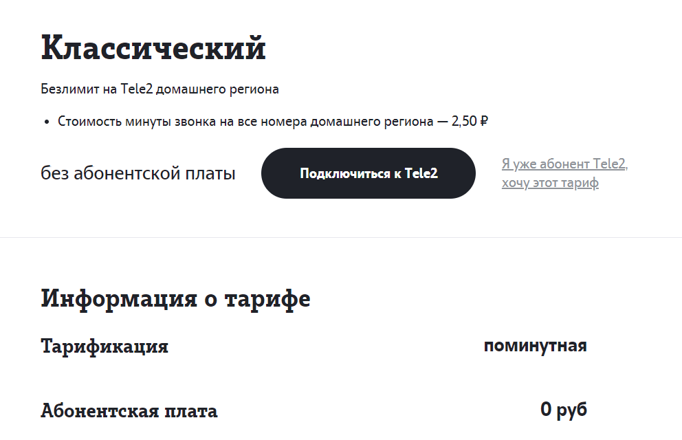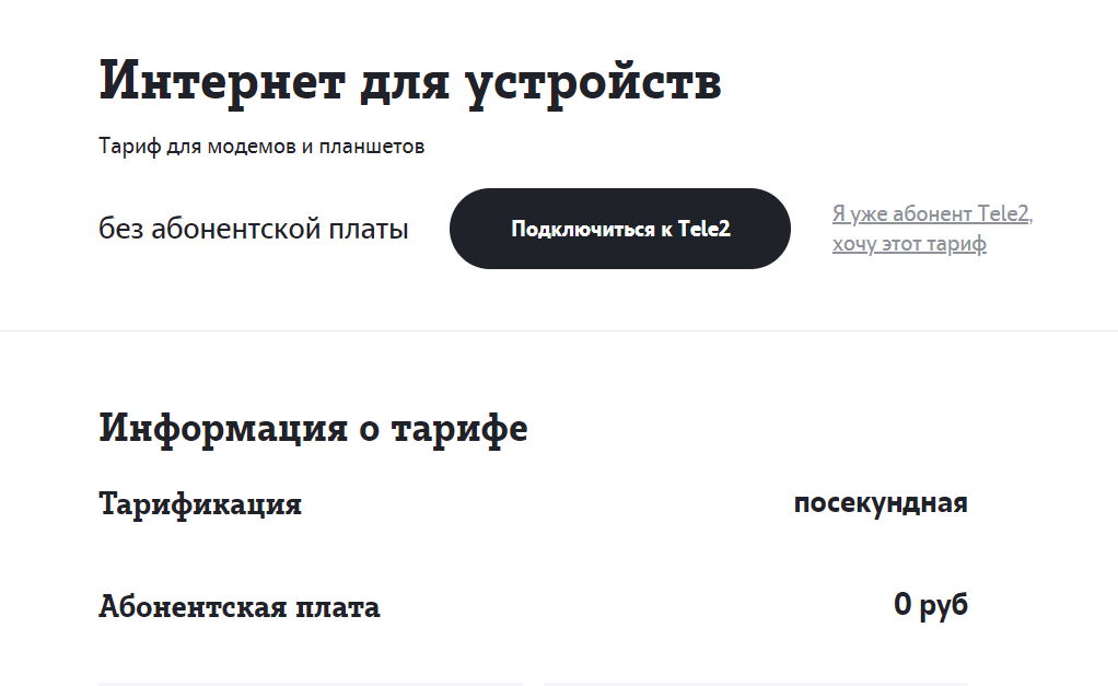 Это вполне себе неплохой тарифный план для различных гаджетов и систем умного дома, но для разговоров он очевидно не подходит. Для пользователей, которые хотят общаться и не платить абонентку, у Теле2 есть только «Классический» — выбирать, как видите, не приходится.