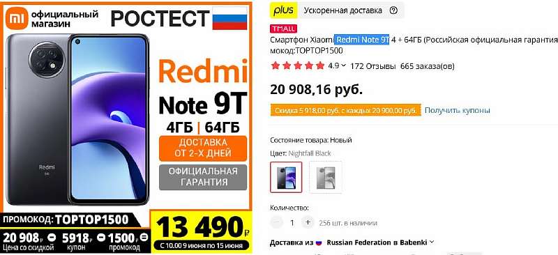 Вот ссылка на распродажу, с 9 по 15 июня смартфон можно взять за 13 490 рублей с учетом купона продавца и промокода TOPTOP1500.