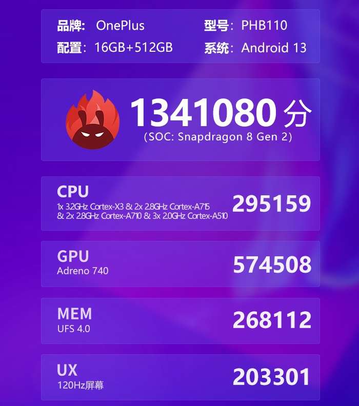 OnePlus 11 дебютирует только 7 февраля 2023 года, но это не помешало ему появиться в бенчмарках. Geekbench подтвердил, что флагман оснащен процессором Qualcomm Snapdragon 8 Gen 2 и 16 ГБ оперативной памяти. Предпродажный образец с аналогичной конфигурацией появился и в другом бенчмарке — AnTuTu. Там добавили, что смарт использует сверхбыструю память LPDDR5X и UFS 4.0, и показали рекордный результат: 1 341 080 баллов.