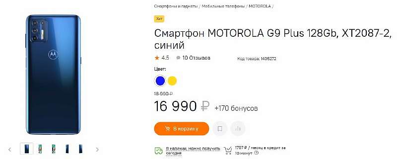 Недавно фирма выпустила отличнейший Motorola G9 Plus, который распродают с хорошей скидкой в Ситилинке. Аппарат подешевел с 19 990 до 16 990 рублей – не нужно ждать распродажи 11.11, нужно брать здесь и сейчас, пока есть в наличии.