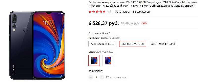 Скидка дня: Lenovo Z5s на Snapdragon 710 за 6500 рублей