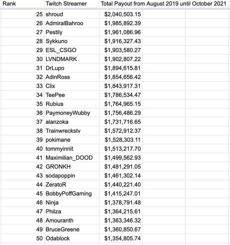 Сколько зарабатывают популярные стримеры? Есть большой список со всеми звездами Twitch