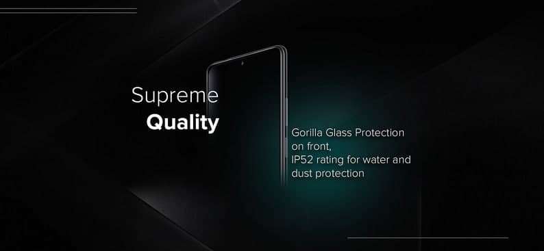 Что касается материалов корпуса, закаленное стекло Gorilla Glass обещают только спереди. Сзади может быть пластик, но этот момент сгладят наличием сертификата IP53, который гарантирует смартфону защиту от брызг и пыли.