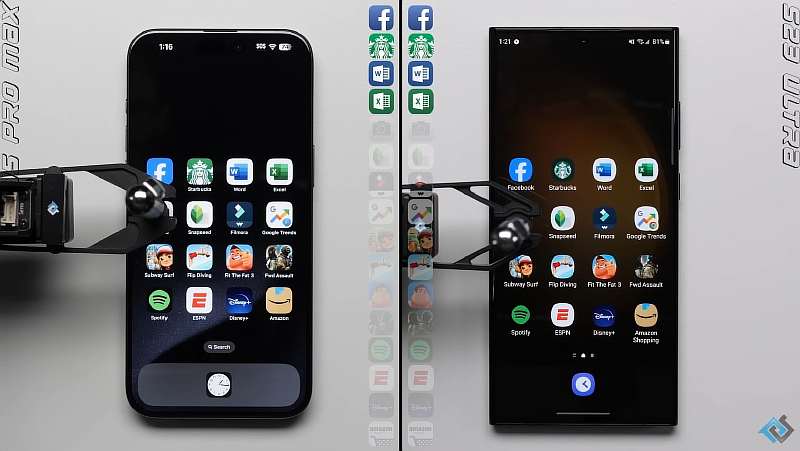 На втором этапе тестирования флагманам предстояло запустить ранее открытые приложения из оперативной памяти (в обратном порядке). Здесь iPhone 15 Pro Max вновь управился быстрее с итоговым результатом 46 секунд и 90 миллисекунд, тогда как у Galaxy S23 Ultra тот же процесс занял на 2 секунды дольше. Это при том, что у смартфона Samsung 12 ГБ оперативной памяти против 8 ГБ у «яблочного» гаджета.