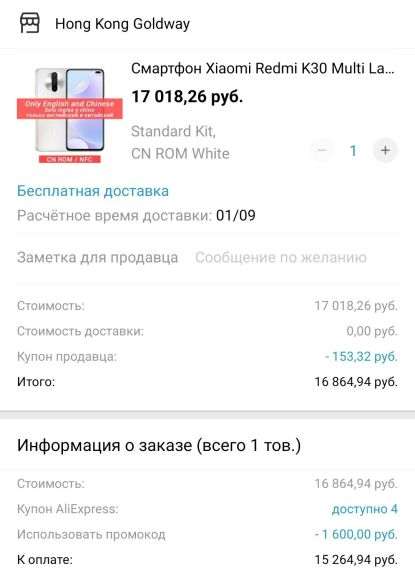 Купить Redmi K30 в России сейчас нельзя даже на сером рынке, но в Китае на эту модель начались фантастические скидки. На Алиэкспресс ее можно заказать за 15 тысяч рублей – это удивительная цена для смартфона с такими характеристиками.
