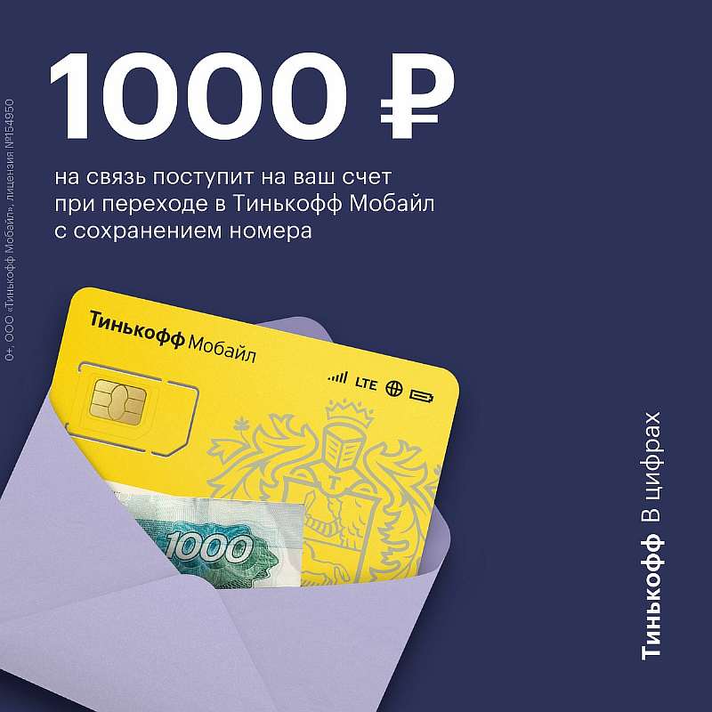 Если вас не устраивает действующий мобильный оператор, то почему бы не попробовать «Тинькофф Мобайл». Стартовый бонус в виде 1000 рублей на услуги связи и оплату мобильного интернета лишним точно не будет. Заодно можно проверить в действии электронные SIM-карты, их ввели недавно, и пока «Тинькофф Мобайл» — единственный российский оператор, у которого они есть. Оформить переход можно через официальный сайт компании буквально за несколько минут.