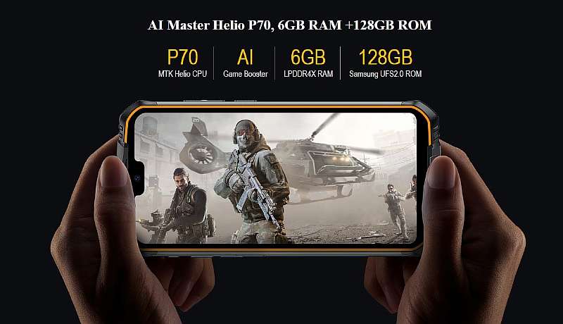 Корпус Dooge S68 Pro выполнен из комбинации пластика, металла и стекла Gorilla Glass 4. Он оснащен 5.9 дюймовым IPS дисплеем с FHD+ разрешением и вырезом под 16-мегапиксельную фронталку. Сердцем смартфона является процессор Helio P70, который питается от аккумулятора емкостью 6300 мАч. Аппарат поддерживает быструю проводную зарядку мощностью 24 Вт и беспроводную зарядку стандарта Qi на 10 Вт. Телефон оборудован портом Type-C, но разъема для наушников в нем нет.
