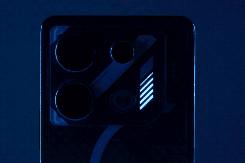 Infinix позиционирует свою новинку как бюджетный игровой смартфон. У него прозрачная задняя крышка, дизайн в стиле киберпанк и небольшой светодиодный индикатор из нескольких полосок, вписанный в блок камеры.
