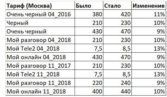 Подорожание коснется исключительно архивных тарифов, цена которых вырастет в среднем на 10%. Изменение стоимости по Москве и области выглядит следующим образом: