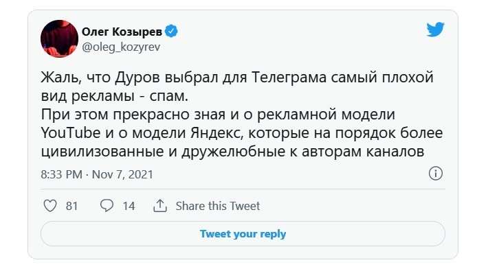 Павел Дуров и представители Telegram еще не комментировали запуск рекламы. С одной стороны понятно, что это временное явление: наверняка случился какой-то сбой, и в будущем его починят. Но такой странный старт Telegram Ads запомнят надолго.