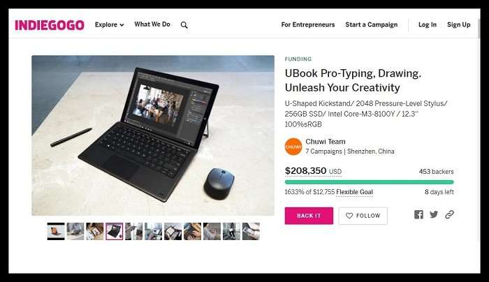 Офисная работа требует от персональных компьютеров всё большей вычислительной мощности. В связи с этим ёмкость аккумуляторов и автономность работы становятся наиболее актуальными факторами роста производительности. На площадке Indiegogo Chuwi недавно выпустила универсальный планшет 2-в-1 UBook Pro, оснащенный процессором Core m3-8100Y и 12.3-дюймовым экраном с соотношением сторон 3:2. Создание планшета поддержали более 450 пользователей со всего мира, и их число продолжает расти.