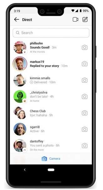 Threads упрощает обмен фотографиями, видео и сообщениями с людьми, которых вы добавили в список близких друзей. Общаться с ними можно и в основном приложении, Threads лишь обеспечивает более удобный и быстрый доступ к диалогам. Также приложение поддерживает групповые чаты и имеет вкладку камеры для быстрых фото и видеосообщений.
