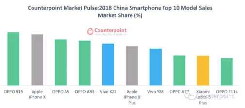 Аналитическое агентство Counterpoint Research опубликовало отчет о самых продаваемых смартфонах в Китае и мире по итогам 2018 года. На крупнейшем рынке поднебесной 5 из 10 мест среди наиболее популярных устройств заняли смартфоны Oppo. Бестселлером стал Oppo R15 – это аппарат среднего ценового сегмента с 6.28’’ AMOLED экраном, процессором Helio P60 и 128/6 ГБ памяти, двойной камерой на 16+5 МП и аккумулятором на 3450 мАч. На момент старта продаж цена устройства составляла около 460 евро.