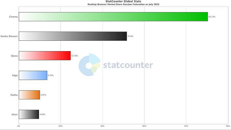 Если вам интересно, какими браузерами предпочитают пользоваться владельцы персональных компьютеров в 2023-м году, то у сервиса Statcounter есть свежая статистика на эту тему. Причем как по мировым трендам, так и по сугубо российским.