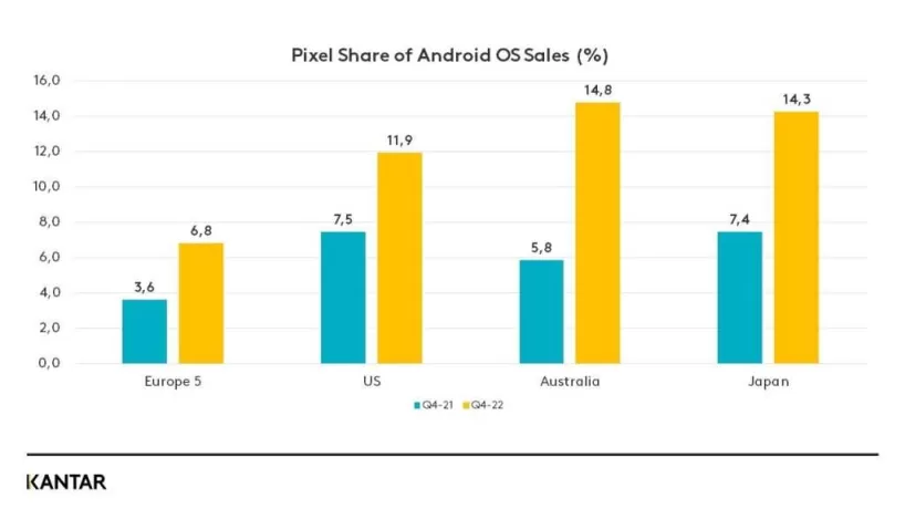 По подсчетам, общее количество пользователей смартфонов выросло на 2% в период с сентября по декабрь, а у Google был рекордный период в истории линейки Pixel. Например, почти каждый пятый (18%) Android-смартфон, проданный в Великобритании, был телефоном Google. Продажи Pixel удвоились в Европе и Японии, и почти утроились в Австралии.