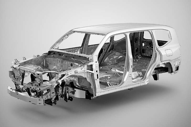 Раньше рама в точках пересечения сваривалась внахлест, и такой метод сильно увеличивал общую массу автомобиля. Теперь применяется технология TWB: стыки соединяются лазерной сваркой в единый каркас, без перехлестов. Toyota является одним из лидеров по внедрению данной технологии в автопром, но для внедорожников она применяется впервые. В результате новая рама «похудела» на 200 кг, но стала на 20% жестче. Из прочих изменений в платформе — центр тяжести опустился ниже, а развесовка по осям стала лучше.