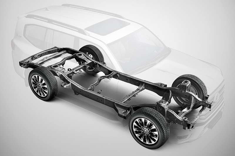 LC300 — все еще рамный внедорожник, с дифференциальным полным приводом и неразрезным задним мостом. В отличие от многих конкурентов Toyota осталась верна традициям. Он построен на лонжеронной раме, которая выглядит практически так же, как и в прошлом поколении, но конструктивно отличия есть.