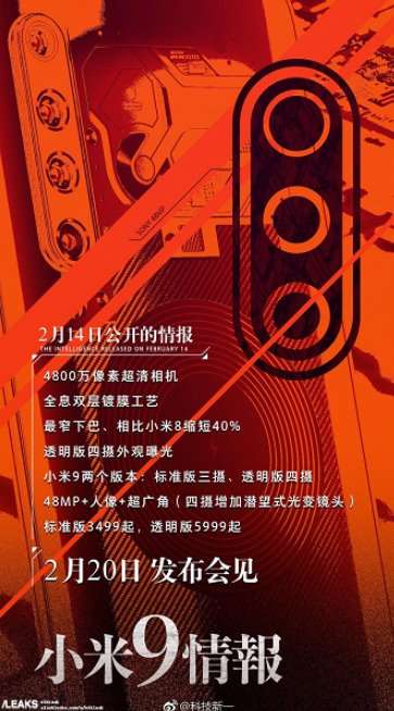 Портал Slashleaks опубликовал изображение официального рекламного буклета еще не анонсированного флагмана Xiaomi Mi 9 и его топовой версии Mi 9 Explorer Edition. Ранее один из основателей компании пообещал, что Mi 9 EE станет самым мощным смартфоном на рынке, а утечка подтвердила наличие в смартфоне основной камеры из 4-ех модулей и прозрачную заднюю панель, как у предшественника Mi 8 Explorer Edition. Также на буклете указана поддержка беспроводной зарядки.