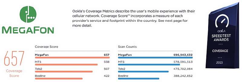 По качеству покрытия впереди также «МегаФон», а вот остальные позиции в топе распределились немного иначе: