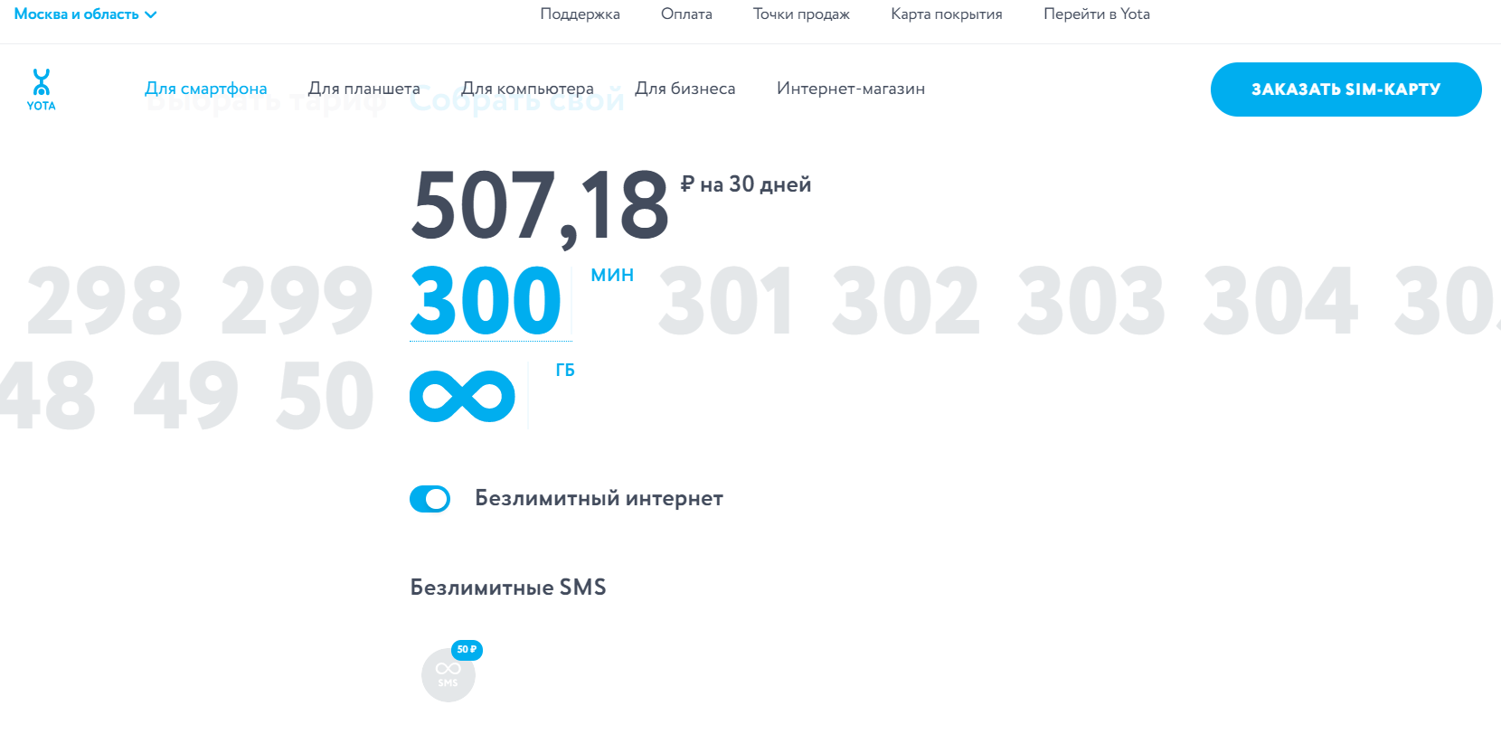 Через фирменный конструктор Yota можно собрать неплохой тарифный план, располагающий безлимитным интернетом. К примеру, безлимитный интернет по всей стране и такие же звонки на номера Yota с небольшим дополнением в виде пакета на 250 минут разговора с абонентами других операторов обойдутся в чуть больше, чем 400 рублей ежемесячно. При желании можно увеличить пакеты доступных минут в меньшую или большую сторону с соответствующими изменениями в цене.