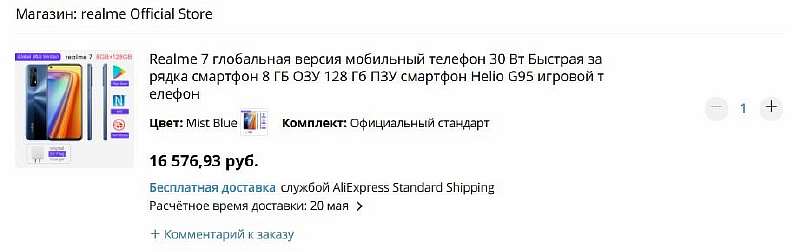 Решение проблемы – Алиэкспресс. В отличие от конкурентов, которые постепенно поднимают цены в Китае, особого подорожания у Realme не наблюдается, и ее смарты все еще выгодно заказывать с Али. Одним из наиболее предпочтительных вариантов сейчас является Realme 7, который можно забрать всего за 16 576 рублей.