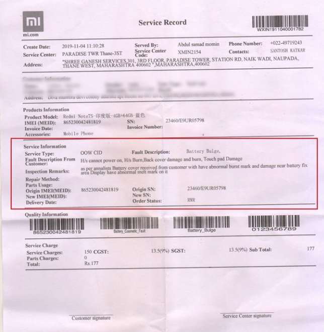 Далее, 4 ноября, Ишвар обратился в авторизованный сервисный центр Xiaomi, сотрудники которого решили отправить погорельца на фабрику для дополнительной диагностики. Уже 7 ноября владельца проинформировали, что «смартфон не удастся починить из-за аномальных повреждений от огня».