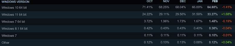 Должно ли это кого-то удивить? Не совсем, потому что игроки, которые собирались перейти на Windows 10/11, уже сделали это. Геймеры не столь консервативная аудитория, и по статистике Steam, только 1.52% опрошенных пользователей по-прежнему используют Steam на Windows 7, и 0.34% — в Windows 8.1. Остальные уже давно перешли на Windows 10 или 11.