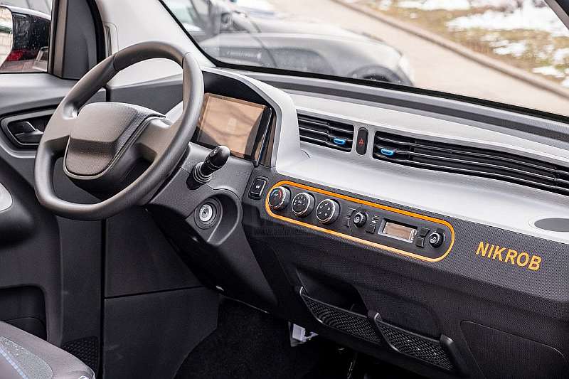 Что по внешности: выглядит Nikrob минималистично и внутри, и снаружи, даже описывать нечего. Для загруженных городских дорог и парковок все подходит идеально: тут тебе и короткий капот, и отсутствие свесов спереди и сзади. Клиренс, судя по фоткам — 15-16 см, чего тоже как раз хватит, чтобы не тереться днищем о лежачих полицейских.