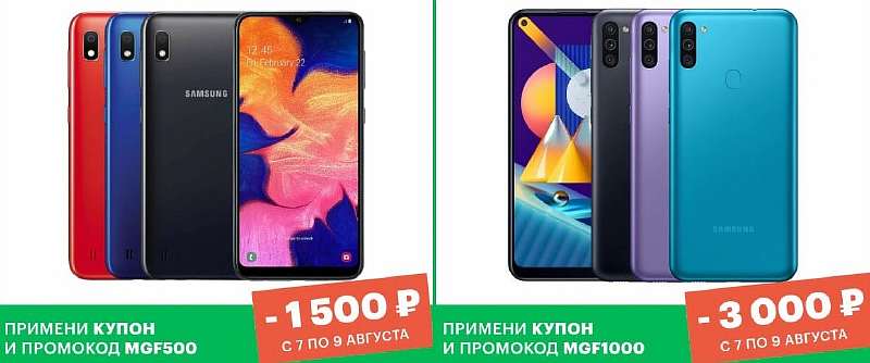 Самые бюджетные девайсы Samsung синхронно подешевели ниже актуальной цены на сером рынке. Прошлогодний Galaxy A10 можно взять за 6 490 рублей (ссылка на акцию), а Galaxy M11 отдают за 7 990 рублей. Скидка на последний особенно хороша.