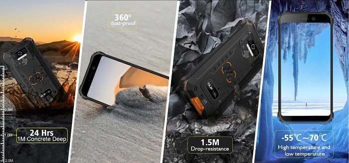 Oukitel WP5 – это защищенный смартфон, который имеет сертфицированную пылевлагозащиту IP68. Он выполнен в ударопрочном прорезиненном корпусе, который выдерживает падение на твердые поверхности с высоты 1.5 м. Также заявлена рабоспособность в диапазоне температур от -55 до +70 °С.