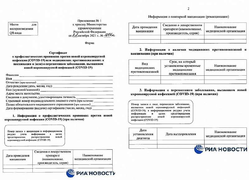 Скан документа уже опубликовали в сети – форма состоит из двух листов, на которых расположены поля для заполнения персональных данных гражданина, сведения о прививке и противопоказаниях, а также перенесенном заболевании, если человек болел. Помимо прочего предусмотрено место для QR-кода, по которому обладатель документа сможет посещать места общего доступа.