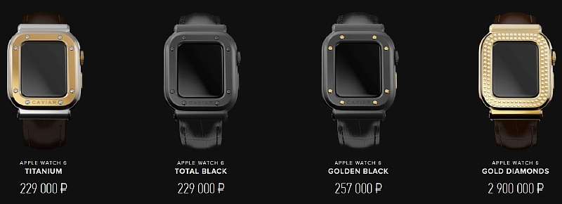 Caviar представил целую коллекцию часиков под названием Apple Watch 6 Limited Edition, в которую вошли сразу четыре модели. Различаются они исключительно материалами и ценником, технически это все те же Apple Watch 6 без малейших изменений.
