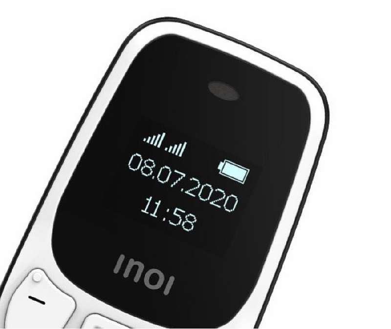 Российская компания Inoi представила очень необычную кнопочную звонилку — Inoi 102. Это самый маленький телефон из моделей, доступных в широкой продаже. Его размеры составляют всего 67 х 28 х 12 мм, а вес — 22 грамма. С виду девайс можно легко спутать с брелоком из-за крошечных размеров корпуса.