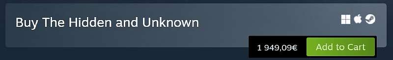 На данный момент самой дорогой игрой в Steam, выпущенной всего три дня назад, является The Hidden and Unknown. Ее разработала словацкая компания ProX, которая на самом деле состоит из одного человека с ником ThePro. Стоит The Hidden and Unknown не менее 1949.09 евро, в зависимости от региона.