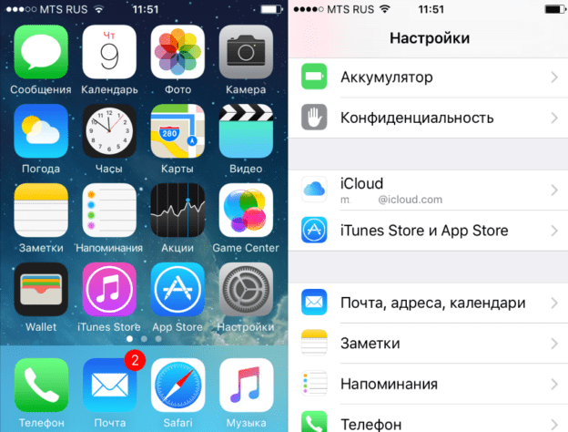 - Откройте в настройках смартфона iCloud.
