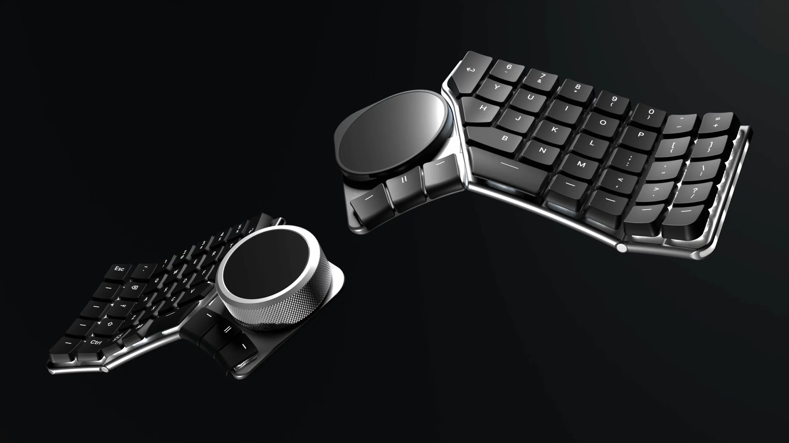Дело в том, что Naya Create это полностью модульная клавиатура, которая состоит из двух частей, где можно заменить буквально все – вплоть до колпачков отдельных клавиш. В ее комплект входит четыре разных модуля, которые крепятся на внутренней стороне обеих половинок, и управляются большим пальцем. Это может быть круглый тачпад, трекбол, поворотное колесо или 3D-мишь, позволяющая перемещать курсор по осям xy и z. Каждое из этих периферийных устройств подходит для разного типа работы с графикой или видео.
