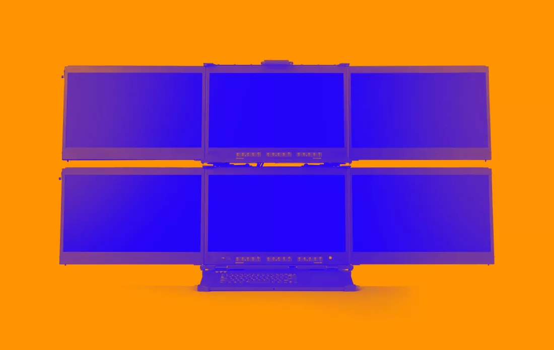 Американская компания Mediaworkstations представила новую версию своей портативной рабочей станции a-X2P. Выглядит она так, как будто явилась прямиком из старых фильмов про хакеров — в максимальной конфигурации у машины сразу 6 складных 24-дюймовых дисплеев, способных работать одновременно, и начинка из самого передового «железа».