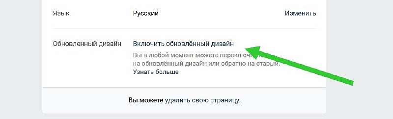 Там будет доступен пункт «Включить обновленный дизайн». В случае чего изменения можно откатить, но придется указать причину возврата на старую версию сайта.