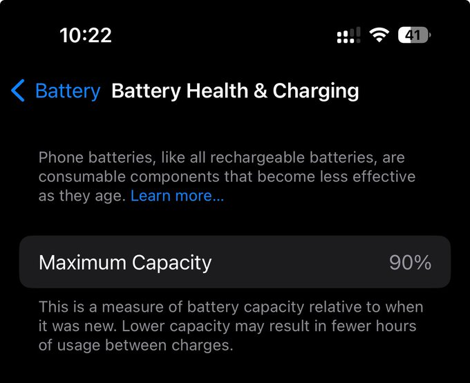 Линейка iPhone 14 вышла 16 сентября 2022 года. Не прошло и 11-и месяцев, а аккумуляторы гаджетов уже демонстрируют 90% от максимальной емкости и ниже. Минимальный из всех показателей просадки, которыми делились владельцы – 87%. А ведь смартфону нет даже года.