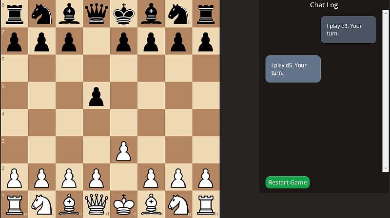 Существует два способа сразиться с нейросетью. Первый – не слишком удобный, запросить игру в шахматы прямо в окне общения с ChatGPT. Но поскольку он не может визуализировать игровую поверхность и фигуры сам по себе, вам придется вводить отдельные ходы через команды, записывать их, и сопоставлять все это с доской на веб-сайте, например Chess.com.