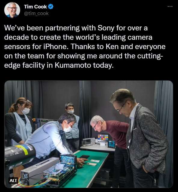 По случаю визита в Японию Тим Кук в Твиттере прямо признался, что при создании камер в айфонах Apple уже более десяти лет тесно сотрудничает с Sony, приобретая у нее CMOS-матрицы.