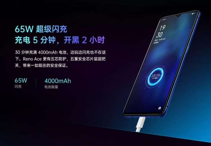 За производительность отвечает топовый Snapdragon 855 Plus, который дополнен 12 ГБ оперативной и 256 ГБ постоянной памяти стандарта UFS 3.0. Заявлено жидкостное охлаждение, которое обеспечит оптимальную производительность системы при продолжительной нагрузке. Одной из ключевых фишек Reno Ace является быстрая зарядка мощностью 65 Вт, способная полностью зарядить аккумулятор емкостью 4000 мАч всего за 30 минут.